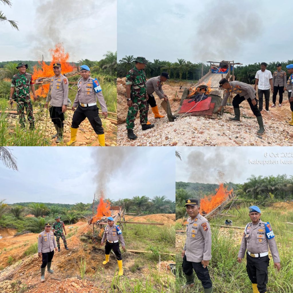 Jajaran Polsek Hulu Kuantan melakukan penertiban terhadap aktivitas Penambangan Emas Tanpa Izin (PETI) di Desa Serosah, Kecamatan Hulu Kuantan, Kabupaten Kuantan Singingi, pada Senin (6/10/2025) sekitar pukul 11.00 WIB.