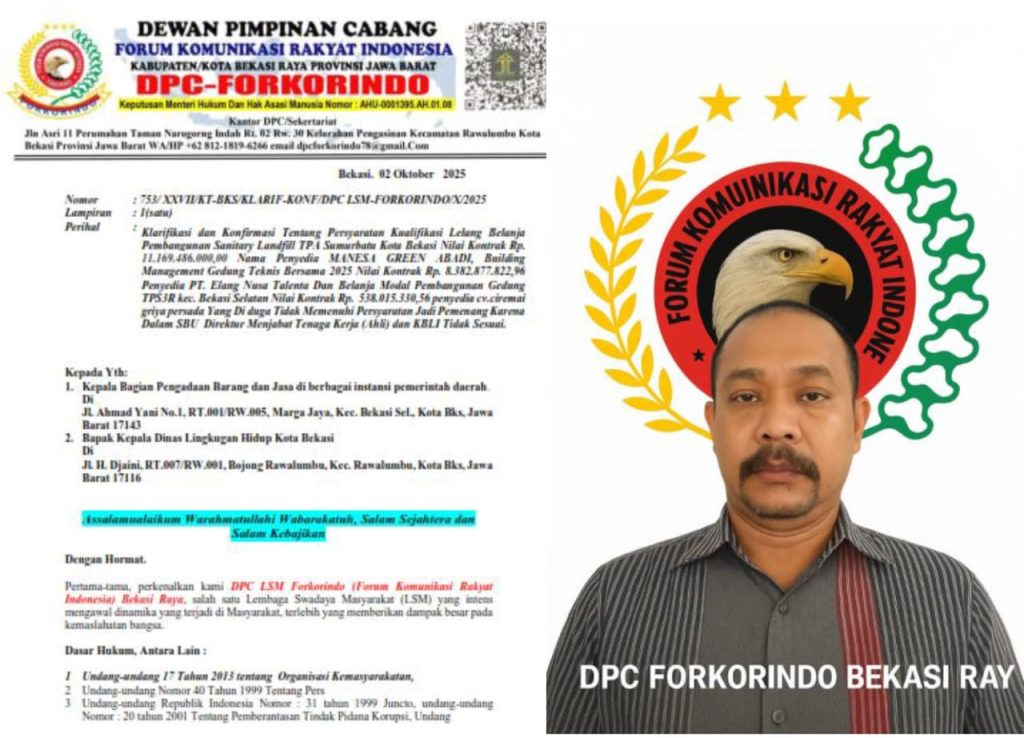 LSM Forkorindo menilai, lemahnya pemahaman teknis pejabat pengadaan dan kelalaian pihak terkait — termasuk KPA, PPK, dan PPTK di lingkungan Dinas Perumahan, Kawasan Permukiman dan Pertanahan Kota Bekasi — telah membuka celah penyalahgunaan kewenangan dalam proses seleksi penyedia.