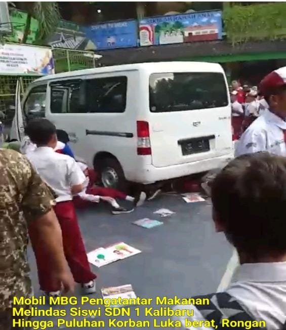 Peristiwa tragis mengguncang SDN 1 Kalibaru, Jakarta Utara, pada Selasa (09/12/2025). Sekitar pukul 06.30 WIB, sebuah mobil Makanan Bergizi Gratis (MBG) tiba-tiba kehilangan kendali dan menghantam pagar sekolah yang saat itu masih tertutup. Kendaraan tersebut kemudian melaju ke area halaman, melindas sejumlah siswa dan guru yang tengah mengikuti kegiatan literasi pagi.