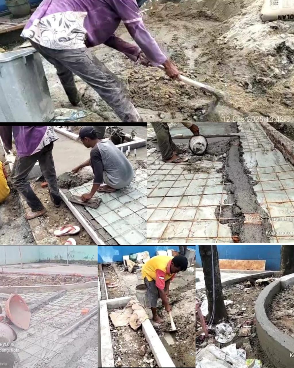 Proses pengecoran dilakukan secara manual menggunakan cangkul, dengan takaran adukan yang dinilai asal-asalan. Komposisi campuran beton yang digunakan—1 sak semen, 5 ember pasir, dan 4 ember kerikil—diduga jauh dari standar mutu konstruksi.