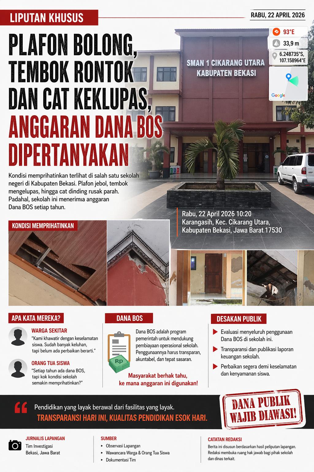 Sekolah tersebut diduga tidak menjalankan prinsip keterbukaan informasi publik serta terdapat indikasi ketidaksesuaian dalam pengelolaan dana yang kini dikenal sebagai Bantuan Operasional Satuan Pendidikan (BOSP). Padahal, penggunaan dana tersebut wajib dilaporkan secara berkala dan transparan kepada publik. (Rabu, 22 April 2026)
